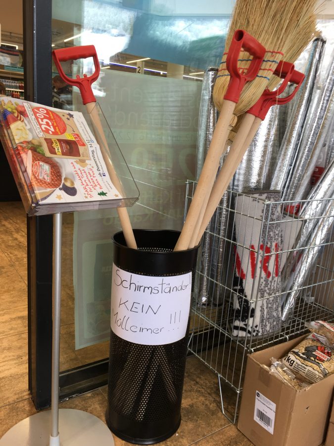 Hier die Schirme rein! …oder: die haben echt für alles einen anderen Namen.