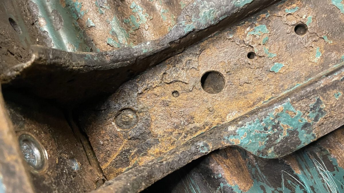 Als das alles ab war lag der hintere Unterboden endlich frei. Und was soll ich sagen, sah im ersten Moment schlimmer aus als es war. Nach dem Entrosten waren keine Löcher im Blech. Da war ich schon mal beruhigt.